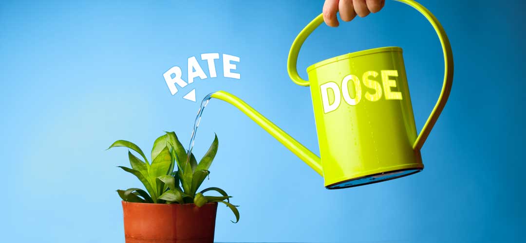 Rate, dose, and feeding duration are all interconnected. If dose and duration are known, then the required rate can be calculated. Or, if the rate and duration are known, then dose can be calculated. For example: